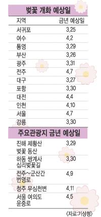 ÀÌ¿¡ µû¶ó ¿ÃÇØ º¢²ÉÀº Á¦ÁÖµµ ¼±ÍÆ÷ 25ÀÏ, ³²ºÎÁö¹æ 26?´ÙÀ½´Þ 2ÀÏ, ÁߺÎÁö¹æ ´ÙÀ½´Þ 3?14ÀÏ, Áߺγ»·ú »ê°£Áö¹æ ´ÙÀ½´Þ 15ÀÏ ÀÌÈÄ ²É¸Á¿ïÀ» ÅͶ߸± °ÍÀ¸·Î ¿¹»óµÆ´Ù.