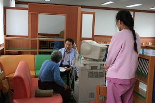 | | ¡ã º»·®µ¿Áֹμ¾ÅÍ 2Ãþ¿¡ ¸¶·ÃµÈ Àӽà Áø·á½Ç¿¡¼ Áֹε鿡°Ô ¿µ¾çÁ¦ µîÀ» ¹«·á Åõ¾àÇϰí ÀÖ´Â °¡¿îµ¥ ÇÑ È¸¿øÀÌ È¯ÀÚµéÀÇ »óŸ¦ »ìÇǰí ÀÖ´Ù. |