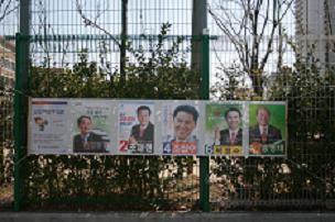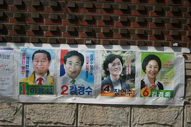 ¡ã ±¤»êÀ»¿¡ Ã⸶ÇÑ 4¸íÀÇ Èĺ¸ÀÚ¸¦ ¾Ë·ÁÁÖ´Â ¼±°Åº®º¸°¡ ºÙ¾ú´Ù. °ú¿¬ ÀÌ °¡¿îµ¥ ´©°¡ ¡®´ç¼±¡¯À̶ó´Â ŸÀÌÆ²À» Â÷ÁöÇÒ ¼ö ÀÖÀ»±î.