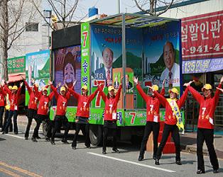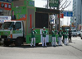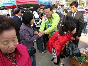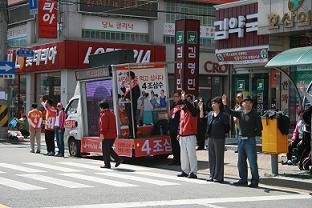 ¡ã ±¤»êÀ» ±âÈ£ 1¹ø À̿뼷 ÅëÇÕ¹ÎÁÖ´ç È帰¡ Áö¿ª±¸³» ½ÃÀåÀ» ¹æ¹®, À¯±ÇÀÚÀÇ µÎ ¼ÕÀ» ¸ÂÀâ°í ÇÑ Ç¥¸¦ È£¼ÒÇϰí ÀÖ´Ù. ¿©·ÐÁ¶»ç¿¡¼ °¡Àå ´ç¼±±Ç¿¡ °¡±î¿î È帷Π²ÅÈ÷°í ÀÖ´Ù.