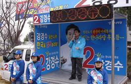 ¡ã ±¤»ê°© ±âÈ£1¹ø ±èµ¿Ã¶ ÅëÇÕ¹ÎÁÖ´ç Èĺ¸ÀÇ ¼±°Å¿îµ¿¿øµéÀÌ ÇÑ Ç¥¸¦ È£¼ÒÇϰí ÀÖ´Ù. ±è È帴 ¿©·ÐÁ¶»ç¿¡¼ ¿ìÀ§¸¦ Á¡Çϰí ÀÖ´Â °ÍÀ¸·Î ºÐ¼®µÈ´Ù.