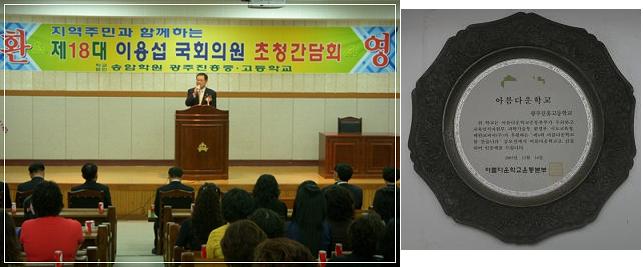 ÀÌ °á°ú Áö³ 2005³â ±³À°ÀÎÀûÀÚ¿øºÎ°¡ ¼±Á¤ÇÑ ¡®Àü±¹¾Æ¸§´Ù¿î Çб³¡¯ Ưº°»óÀ» ¼ö»óÇßÀ¸¸ç, Áö³ÇØ ¡®¾Æ¸§´Ù¿î Çб³ ¸¸µé±â¡¯ ÃÖ¿ì¼öÇб³·Î ¼±Á¤µÈ µ¥ ÀÌ¾î ¡®2007 Àü±¹Çб³ ½£ ½Ã¹üÇб³¡¯·Î ¼±Á¤µÅ ¿À´Â 2009³â±îÁö »ê¸²Ã»ÀÇ ÈÄ¿øÀ» ¹Þ´Â´Ù.
