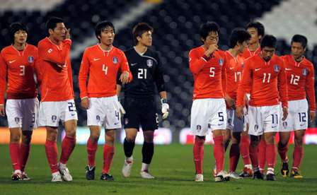 ÇãÁ¤¹« °¨µ¶(54)ÀÌ À̲ô´Â Çѱ¹ Ã౸´ëÇ¥ÆÀÀº 18ÀÏ ¹ã(Çѱ¹½Ã°£) ¿µ±¹ ·±´øÀÇ Å©·¹À̺ì ÄÚÆ¼Áö¿¡¼ ¿¸° µ¿À¯·´ °È£ ¼¼¸£ºñ¾Æ¿ÍÀÇ Ä£¼±°æ±â¿¡¼ Àü¹Ý 7ºÐ Áö±âÄ¡¿¡°Ô ³»ÁØ ¼±Á¦°ñÀ» ¸¸È¸ÇÏÁö ¸øÇϰí 0-1·Î ¾Æ±õ°Ô ÆÐÇß´Ù.