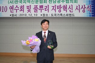 À̿뼷 ±¹È¸ÀÇ¿øÀº Áö³ 10ÀÏ Àü³² ȼø±º ¼ÒÀç µµ°î½ºÆÄ·£µå¿¡¼ °³ÃÖÇÑ Çѱ¹Áö¿ª½Å¹®Çùȸ(ÀÌÇÏ ÇÑÁöÇù) Àü³²±¤ÁÖÇùÀÇȸ ¡®2010 ±âÀÚÀÇ ¹ã¡¯ Çà»ç¿¡¼ ¡®Ç®»Ñ¸® Áö¹æÇõ½Å ÀÇÁ¤´ë»ó¡¯ ¼ö»óÀÚÀÇ ¿µ¿¹¸¦ ¾È¾Ò´Ù.