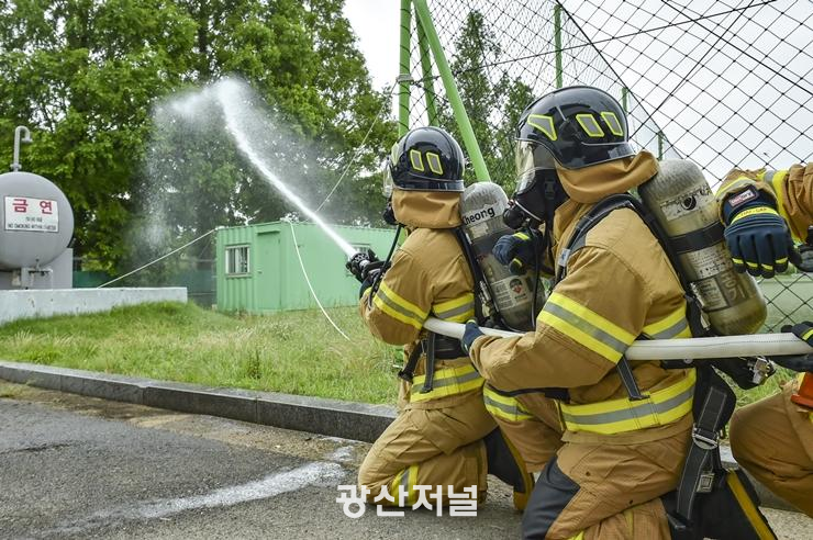 °ø±º 1Àüºñ ¼Ò¹æ±¸Á¶Áß´ëÀå ±èÈ¿Áß ¿ø»ç(154±â)´Â ¡°ÈÀç ¹ß»ý ½Ã ½Å¼ÓÇϰí Á¤È®ÇÑ ¼Ò¹æÀÛÀüÀ» ÅëÇØ¼ 1ÀüºñÀÇ Çʼö ÀÛÀü ¿©°ÇÀ» º¸ÀåÇÒ ¼ö ÀÖ´Ù¡±¸é¼ ¡°1Àüºñ ¼Ò¹æ±¸Á¶Áß´ë ¿ä¿øµéÀº ½ÇÀü°ú °°Àº ÈÆ·ÃÀ» Áö¼ÓÀûÀ¸·Î ½Ç½ÃÇØ ÃÖ»óÀÇ Ç×°øÀÛÀü ¿©°ÇÀ» ¿ÏºñÇÒ ¼ö ÀÖµµ·Ï ÃÖ¼±À» ´ÙÇϰڴ١±°í ¸»Çß´Ù.