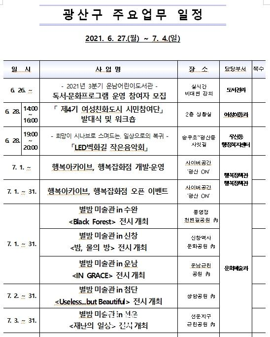 ±¤»ê±¸ ÁÖ¿ä¾÷¹« ÀÏÁ¤(6.27~7.4)