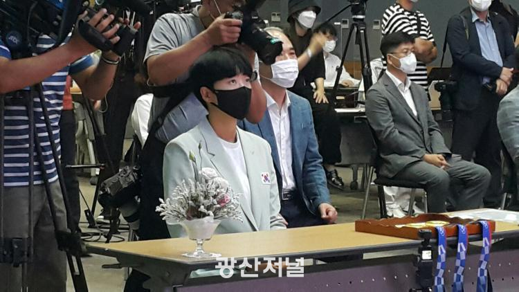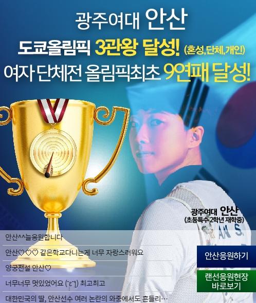 ¾È»ê èÇǾðÀº 4ÀÏ ÀçÇÐÁßÀÎ ±¤ÁÖ¿©ÀÚ´ëÇб³¿¡¼ 2020µµÄì¿Ã¸²ÇÈ 3°ü¿Õ ¾È»ê ¼±¼ö ȯ¿µ½Ä¿¡¼ ¡®½¸¿ÀÇÁ¡¯ Çʽ ºñ°áÀ» ¹àÇû´Ù.