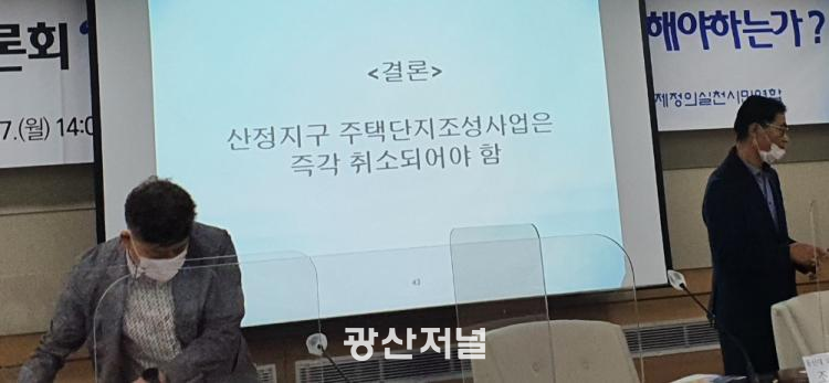 ÇÑÆí ±èÈ«ÀÏ »êÁ¤Áö±¸ °³¹ß ¹Ý´ë´ëÃ¥À§¿øÈ¸ »ç¹«±¹ÀåÀº ¡°¿À´Ã Åä·Ðȸ´Â »êÁ¤°ø°øÁÖÅÃÁö±¸ °³¹ßÀÌ ÇÕ´çÇÑ ÁÖÅðø±Þ»ç¾÷ÀÌ ¾Æ´Ï¶ó´Â ÃæºÐÇϰí Ÿ´çÇÑ ±Ù°Å°¡ ³ª¿Í ÀÇ¹Ì ÀÖ´Â Åä·Ðȸ°¡ µÅ ¼º°ú°¡ Å« ½Ã°£À̾ú´Ù¡±°í Æò°¡Çß´Ù.