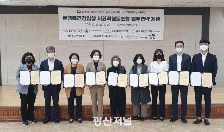 29ÀÏ ±¤»ê±¸¿¡ µû¸£¸é, ´ÃÇູ°Ç°¹ä»ó »çȸÀûÇùµ¿Á¶ÇÕÀº À̳¯ ¿ì»êµ¿ ÇàÁ¤º¹Áö¼¾ÅÍ 3Ãþ °´ç¿¡¼ ±¤»ê±¸ÀÚ¿øºÀ»ç¼¾ÅÍ, ´ÃÇູ¸¶À»°Ç°¼¾ÅÍ(±¤ÁÖÀÇ·á»çÇù), »çȸÀûÇùµ¿Á¶ÇÕ »ì¸² µî 7°³ ±â°ü°ú ¸¶À»º¹Áö°øµ¿Ã¼¸¦ °ÈÇϱâ À§ÇÑ ¾÷¹«Çù¾àÀ» ü°áÇß´Ù.
