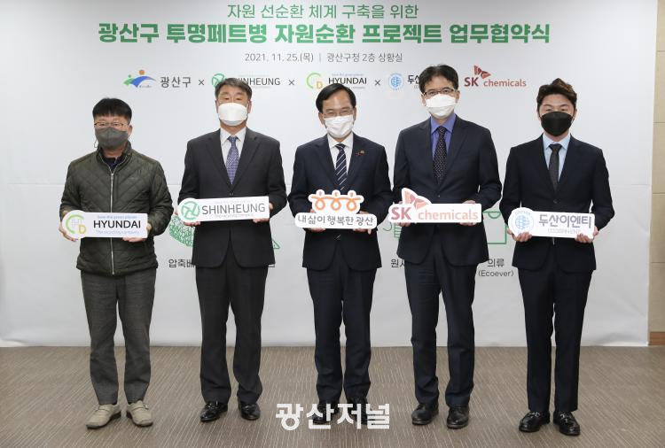 ±¤»ê±¸´Â 25ÀÏ SKÄɹÌÄ®, µÎ»êÀÌ¿£Æ¼, ½ÅÈïÀÚ¿ø, Çö´ëȯ°æ µî 4°³ ±â¾÷°ú Åõ¸íÆäÆ®º´ °íǰÁú ÀçȰ¿ëÀ» À§ÇÑ ¾÷¹«Çù¾àÀ» ü°áÇß´Ù. À̹ø Çù¾àÀº ¿ÃÇØ ¸» Åõ¸íÆäÆ®º´ ºÐ¸®¹èÃâÀÌ ÁÖÅÃ‧»ó°¡·Î È®´ë ½ÃÇàµÇ´Â °Í¿¡ ´ëºñÇØ ±¤»ê±¸°¡ SKÄɹÌÄ®¿¡ Á¦¾ÈÇÏ¸é¼ ÃßÁøµÆ´Ù.¼¼°è ÃÖÃÊ·Î ÈÇÐÀû ÀçȰ¿ë ±â¼úÀ» Àû¿ëÇÑ ÈÀåǰ ¿ë±â ¡®¿¡ÄÚÆ®¸®¾Æ(ECOTRIA) CR¡¯À» ¾ç»êÇØ ±¹³»¿Ü ÈÀåǰ ¾÷ü¿¡ °ø±ÞÇϰí ÀÖ´Â SKÄɹÌÄ®Àº ¾çÁúÀÇ Åõ¸íÆäÆ®º´ °ø±Þó¸¦ ã´ø Áß ±¤»ê±¸ÀÇ Á¦¾ÈÀ» ¹Þ°í Àû±ØÀûÀ¸·Î È´äÇß´Ù.