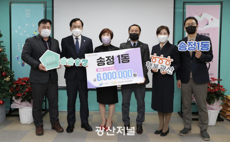 ÁֹεéÀÌ ³ª´®¹®ÈÀç´Ü¿¡ 600¸¸ ¿øÀ» ±âŹÇÑ µ¥ ÀÌ¾î ¼ÛÁ¤»ç¶ûº´¿ø °ÜÀÚ¾¾ºÀ»çȸ¿Í ¿À¼º°ø¾÷»ç, ¼ÛÁ¤1µ¿ ±â°ü»çȸ´ÜüÀåÇùÀÇȸ´Â û¼Ò³â°ú ´ëÇлý¿¡°Ô ÀåÇбÝÀ» Àü´ÞÇß´Ù.