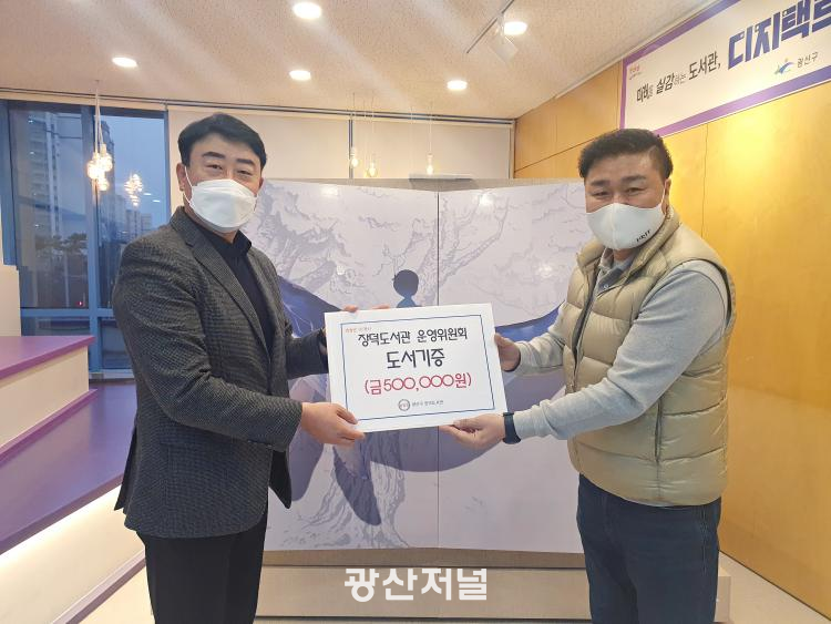 [±¤»êÀú³Î] Àå´öµµ¼°ü ¿î¿µÀ§¿øÈ¸(À§¿øÀå ±èÅ¿Ï)°¡ 14ÀÏ Àå´öµµ¼°ü¿¡ 50¸¸¿ø »ó´çÀÇ µµ¼¸¦ ±âÁõÇß´Ù. Àå´öµµ¼°ü ¿î¿µÀ§¿øÈ¸´Â ¸¹Àº ÁֹεéÀÌ Ã¥À» ´õ °¡Ä¡ ÀÖ°Ô È°¿ëÅä·Ï Çϱâ À§ÇØ À§¿øµéÀÌ ½Ê½ÃÀÏ¹Ý Á¤¼ºÀ» ¸ð¾Æ ¸Å³â 50¸¸¿ø »ó´çÀÇ µµ¼ ¶Ç´Â ±Ý¾×À» Àå´öµµ¼°ü¿¡ ±âÁõÇØ¿À°í ÀÖÀ¸¸ç, ½Å°£µµ¼ ¹× ½ºÅ׵𡤺£½ºÆ®¼¿·¯ ±¸ÀÔÀ¸·Î ÁֹεéÀÇ µ¶¼ °¥ÁõÀ» ÇØ¼ÒÇÏ°í µµ¼°ü°ú ÇÔ²²Çϰí Âü¿©ÇÒ ¼ö ÀÖ´Â °è±â¸¦ ¸¶·ÃÇϰí ÀÖ´Ù.