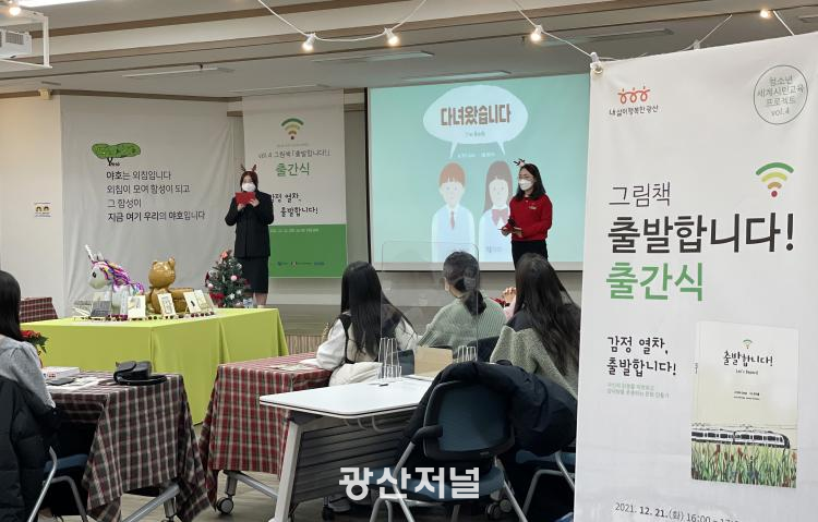 ±¤»ê±¸´Â 2016³â È£³²´ë¿Í û¼Ò³â ¼¼°è½Ã¹Î±³À° °øµ¿¾÷¹«Çù·ÂÀ» ü°áÇϰí, û¼Ò³â ¼¼°è½Ã¹Î±³À°»ç¾÷ ÇÁ·ÎÁ§Æ®·Î ¸Å³â ±×¸²Ã¥À» Á¦ÀÛÇϰí ÀÖ´Ù. 'Ãâ¹ßÇÕ´Ï´Ù!¡¯´Â ³× ¹øÂ° °øµ¿Çù·Â °á°ú¹°ÀÌ´Ù. ¸¶À½°Ç°À» ÁÖÁ¦·Î, ¡®À¯¸®¡¯¶ó´Â ÁÖÀΰøÀÌ ¡®°¨Á¤¿Â÷¡¯¿¡¼ ´Ù¾çÇÑ °¨Á¤À» ³ª´©°í, °ø°¨°ú À§·Î¸¦ ¹Þ´Â »ç¶÷µéÀ» º¸¸é¼ ¼ÖÁ÷ÇÑ ÀÚ½ÅÀÇ °¨Á¤À» Á÷¸éÇÏ°Ô µÇ´Â °úÁ¤À» ´ã¾Ò´Ù. ¡®¿ÍÀÌÆÄÀÌ¡¯¿Í ¡®²É¡¯À» °¨Á¤À» Ç¥ÇöÇÏ´Â ÀåÄ¡·Î Ȱ¿ëÇØ ´©±¸³ª ½±°Ô À̾߱⿡ ºüÁ®µéµµ·Ï Çß´Ù.