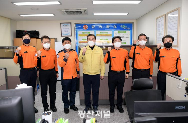 [±¤»êÀú³Î] À̿뼷 ±¤ÁÖ±¤¿ª½ÃÀåÀÌ 2ÀÏ ¿ÀÈÄ ½Å°¡ 119¾ÈÀü¼¾Å͸¦ ¹æ¹®ÇÏ¿© ¼³ ¿¬ÈÞ ±Ù¹«ÀÚµéÀ» °Ý·ÁÇϰí ÀÖ´Ù