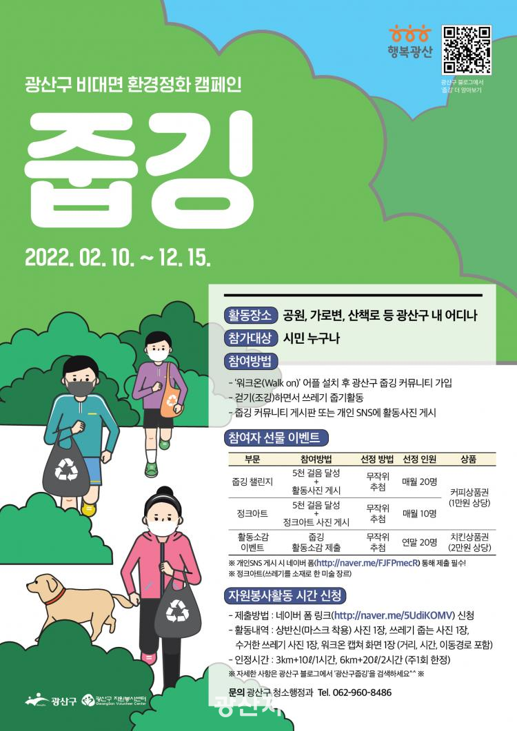 ±¤»ê±¸´Â ¡®Áݱ롯À» ÅëÇØ ºÀ»ç½ÇÀûÀ» ½×´Â û¼Ò³â, û³â Âü¿©ÀÚ°¡ ¸¹¾Ò´ø °ÍÀ» °í·ÁÇØ ¿ÃÇØµµ ÀÚ¿øºÀ»ç¼¾ÅÍ¿Í Çù¾÷ÇØ ½±°í °£ÆíÇÏ°Ô ºÀ»ç½Ã°£À» ¹ÞÀ» ¼ö ÀÖµµ·Ï Çß´Ù. 1½Ã°£ ±âÁØ 3km °È±â ¹× 10L ¾²·¹±â ¼ö°Å(2½Ã°£Àº 6km °È±â, 20L ¾²·¹±â ¼ö°Å)¸¦ ´Þ¼ºÇÏ¸é ºÀ»ç½Ã°£ÀÌ ÀÎÁ¤µÈ´Ù.(ÁÖ 1ȸ ÇÑÁ¤)