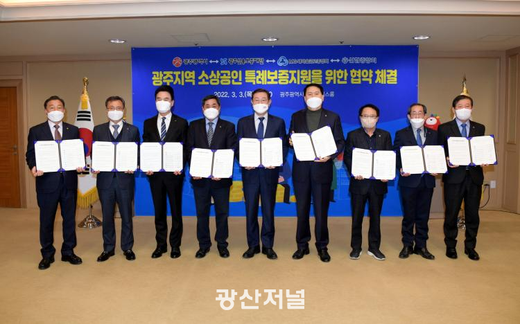 ±¤ÁÖ±¤¿ª½Ã´Â 3ÀÏ Áö¿ª ¼Ò»ó°øÀεéÀÇ °æ¿µ¾ÈÁ¤°ú Áö¿ª°æÁ¦ Ȱ¼ºÈ¸¦ À§ÇØ »õ¸¶À»±Ý°íÁß¾Óȸ ±¤ÁÖÀü³²Áö¿ª µ¿±¸¡¤È¼ø±ºÇùÀÇȸ, ¼±¸ÇùÀÇȸ, ³²±¸¡¤±¤»ê±¸ÇùÀÇȸ, ºÏ±¸ÇùÀÇȸ, ½Å¿ëÇùµ¿Á¶ÇÕÁß¾Óȸ ±¤ÁÖÀü³²Áö¿ªÆòÀÇȸ, ºÏºÎÆòÀÇȸ, ¼ºÎÆòÀÇȸ(ÀÌÇÏ ¡®±ÝÀ¶±â°ü¡¯À̶ó ÇÑ´Ù), ±¤Áֽſ뺸ÁõÀç´Ü µî 8°³ ±â°ü°ú ¼Ò»ó°øÀΠƯº°À¶ÀÚÁö¿ø ¾÷¹«Çù¾àÀ» ü°áÇß´Ù.