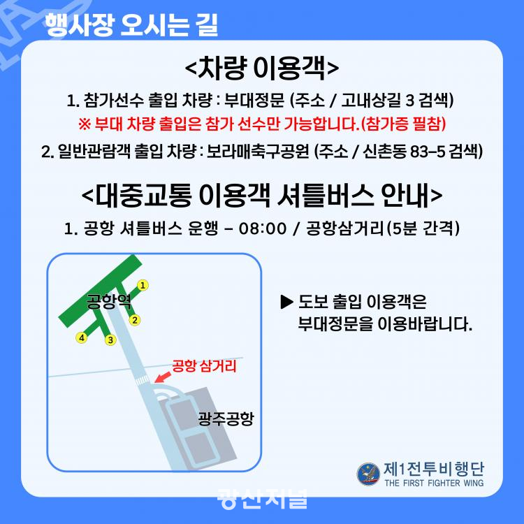 ±¤ÁÖ¡¤Àü³² Áö¿ª¿¹¼± ºÎ´ëÀÔÀåÀº 08½Ã 30ºÐºÎÅÍ °¡´ÉÇÏ¸ç °³È¸½Ä°ú ½ÄÀüÇà»ç´Â 10½Ã¿¡ ÁøÇàµÉ ¿¹Á¤ÀÌ´Ù. ¿¹¼±´ëȸ ¹× Çà»ç´Â Âü°¡ ¿©ºÎ¿Í °ü°è¾øÀÌ °ü¶÷ÀÌ °¡´ÉÇϸç À̶§ ½ÅºÐÁõ(Áֹεî·ÏÁõ, ¿îÀü¸éÇãÁõ, ¿©±Ç µî)À» ÁöÂüÇØ¾ß ÇÑ´Ù. ºÎ´ë ÃâÀÔ°ú °°Àº °æ¿ì Âü°¡¼±¼ö´Â Âü°¡ÁõÀ» ÁöÂüÇÏ¿© ºÎ´ë Á¤¹®(°í³»»ó±æ3)À¸·Î ÀÔ¿µÇÏ°Ô µÇ¸ç ÀϹݰü¶÷°´ÀÇ °æ¿ì º¸¶ó¸Å Ã౸°ø¿ø¿¡ ÁÖÂ÷ ÈÄ ¼ÅƲ¹ö½º¸¦ ž½ÂÇÏ°Ô µÈ´Ù. ´ëÁß±³Åë À̿밴Àº °øÇ׿ª¿¡¼ ÇÏÂ÷ÇÏ¿© ¼ÅƲ¹ö½º¸¦ Ÿ°í ÀÔ¿µÇÏ°Ô µÈ´Ù.