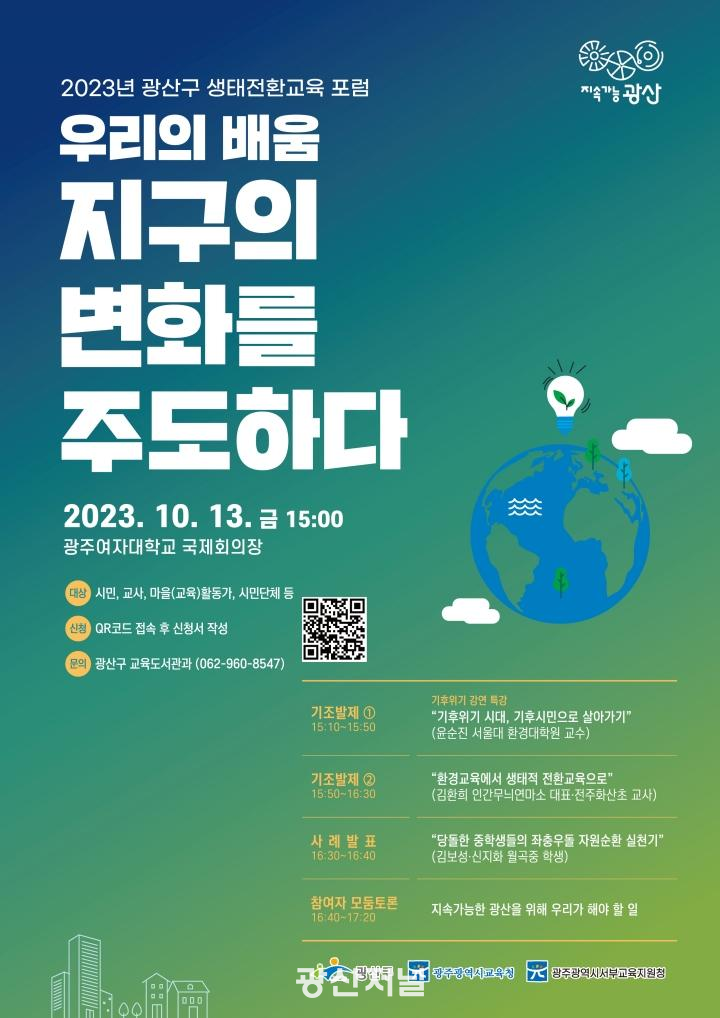 ±¤»ê±¸ °ü°èÀÚ´Â ¡°À̹ø Æ÷·³Àº Áö¼Ó°¡´É ¹ßÀüÀ» À§ÇÑ ÀÎ½Ä °íÃë¿Í È®»êÀ» À§ÇÑ »ýÅÂÀüȯ±³À°ÀÇ ¹æÇâ°ú °ü·Ã Á¤Ã¥À» °±¸ÇÏ´Â °ø·ÐÀÇ ÀåÀÌ µÉ °Í¡±À̶ó¸ç ¡°Áö¿ª Çб³¿Í ¸¶À»ÀÌ ¿¬°èÇÏ´Â »ýÅÂÀüȯ±³À° ³×Æ®¿öÅ©°¡ ¸¸µé¾îÁö´Â °è±â°¡ µÇ±æ ±â´ëÇÑ´Ù¡±°í ¹àÇû´Ù.
