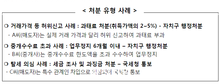 ±¤Áֽô Á¤¹ÐÁ¶»ç °á°ú¸¦ Åä´ë·Î Áö¿¬¡¤ÇãÀ§½Å°í(°è¾àÀÏ ¹× °Å·¡°¡°Ý µî), Áß°³¼ö¼ö·á Ãʰú µîÀÇ À§¹Ý»çÇ׿¡ ´ëÇØ¼´Â °üÇÒ ÀÚÄ¡±¸¿¡¼ °úÅÂ·á ºÎ°ú, ¾÷¹«Á¤Áö µî ÇàÁ¤Ã³ºÐÇÒ ¹æÄ§ÀÌ´Ù. ¶Ç ¾çµµ¼¼¡¤Áõ¿©¼¼ Å»·ç ÀǽÉ, ÀÚ±ÝÃâó ºÒºÐ¸í °Ç µî¿¡ ´ëÇØ¼´Â ±¹¼¼Ã»À¸·Î Åëº¸ÇØ ¼¼±ÝÁ¶»ç ÈÄ °ú¡±ÝÀ» óºÐÅä·Ï ÇÒ °èȹÀÌ´Ù.
