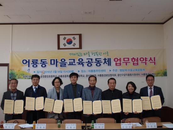 ±¤»ê±¸ ¾î·æµ¿ Áֹΰú »çȸ´Üü ±×¸®°í Çб³°¡ ¸¶À»±³À°°øµ¿Ã¼ »ç¾÷ Çù¾àÀ» 14ÀÏ ¸Î¾ú´Ù. À̳¯ ¿ÀÈÄ 4½Ã µ¿ Áֹμ¾ÅÍ¿¡¼ °¡Áø Çù¾à½Ä¿¡´Â ¸¶À»±³À°°øµ¿Ã¼»ç¾÷À» ÇÔ²² ÃßÁøÇÏ´Â ÄÁ¼Ò½Ã¾ö ±¸¼º ±â°üµéÀÌ Âü¿©Çß´Ù.
