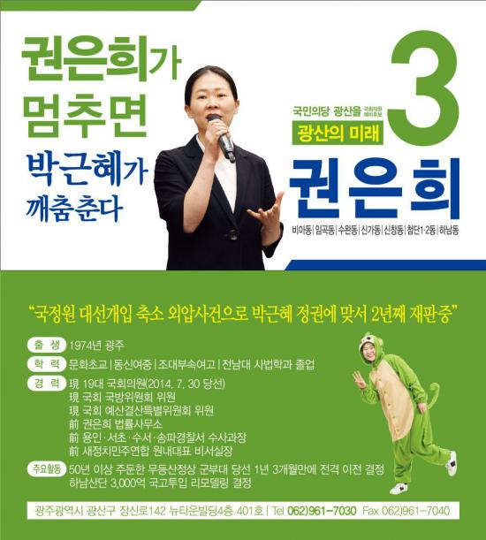 ±ÇÀºÈñ ¿¹ºñÈ帴 Áö³´Þ 29ÀÏ ±¤»ê±¸¼±°Å°üÀ§¿øÈ¸¿¡ ¿¹ºñÈĺ¸ µî·ÏÀ» ¸¶ÃÆÀ¸¸ç ¿À´Â 3ÀÏ ¿ÀÈÄ 3½Ã ¡®±¹¹ÎÀÇ´ç ½Â¸®µ¥ÀÌ¡¯¿¡ ¸ÂÃç ¼ö¿Ïµ¿ ±ÇÀºÈñ ±¹È¸ÀÇ¿øÈÄ¡¦ |