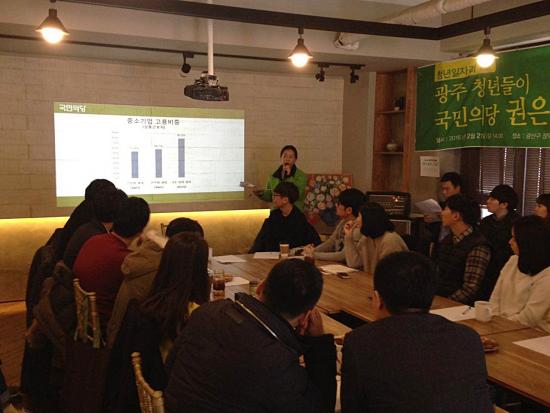 ±¹¹ÎÀÇ´ç ¼Ò¼Ó ±ÇÀºÈñ ÀÇ¿ø(±¤ÁÖ ±¤»êÀ»)Àº 21ÀÏ ±¤»ê±¸ Àå´öµ¿ ¼ÒÀç Ä«Æä¿¡¼ ¡®Ã»³â ÀÏÀÚ¸® ¹®Á¦¡¯¸¦ ÁÖÁ¦·Î ±¤ÁÖ Ã»³â 30¿©¸í°ú ÇÔ²² ¡®Ã»³â ÀÏÀÚ¸® ÅäÅ©¡¯ Çà»ç¸¦ °¡Á³´Ù.