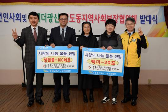 ±¤Áֽø³ Á¦1¿ä¾çº´¿ø․Á¤½Åº´¿ø(ÀÌ»çÀå ¹ÚÀμö) ÀÓÁ÷¿øµéÀÌ 12ÀÏ, »ïµµµ¿ 2016 ½Å³âȸ¿Í ¡®»ïµµµ¿Áö¿ª»çȸº¸ÀåÇùÀÇü¡¯ ¹ß´ë½Ä Çà»ç°¡ ÇÔ²² ¿¸° ±¤»ê±¸ »ïµµµ¿Áֹμ¾Å͸¦ ã¾Æ ÈÄ¿øÇ°À» ±âŹÇß´Ù.