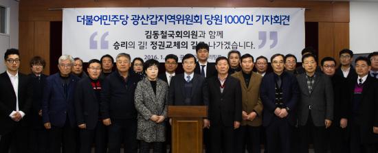 ´õºÒ¾î¹ÎÁÖ´ç ±¤»ê°© ´çÁ÷ÀÚ ÀÏõÀÎ(1000¸í)Àº 5ÀÏ ¿ÀÈÄ 2½Ã ±¤ÁÖ½ÃÀÇȸ ºê¸®ÇÎ ·ë¿¡¼ ±âÀÚȸ°ßÀ» °®°í ºÒ¾È°ú ºÒ½ÅÀÇ ¾ÆÀÌÄÜ ´õºÒ¾î¹ÎÁÖ´çÀ» ¶°³ª ±èµ¿Ã¶±¹È¸ÀÇ¿ø°ú ÇÔ²² ½Â¸®ÀÇ ±æ, Á¤±Ç±³Ã¼ÀÇ ±æÀ» ³ª¼´Â Å»´ç ±âÀÚȸ°ßÀ» ¿¾ú´Ù.