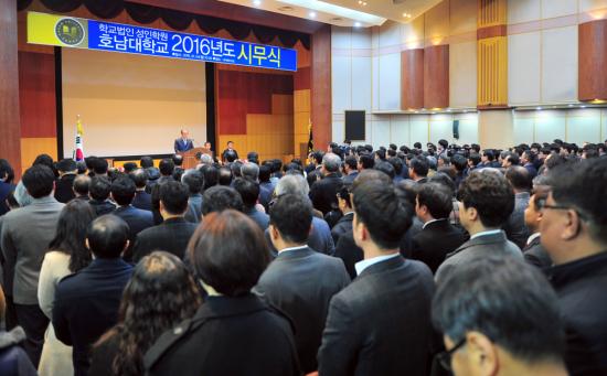 Çб³¹ýÀÎ ¼ºÀÎÇпø È£³²´ëÇб³(ÀÌ»çÀå ¹Ú±âÀÎ)´Â 1¿ù 4ÀÏ ¿ÀÀü 10½Ã 30ºÐ Áß¾Óµµ¼°ü 1Ãþ ±¹Á¦È¸Àǽǿ¡¼ ¹Ú±âÀÎ ¼³¸³ÀÚ °â ÀÌ»çÀå°ú ¼°¼® ÃÑÀå, ¹Ú»óö ºÎÃÑÀåÀ» ºñ·ÔÇÑ ±³Á÷¿ø 500¿© ¸íÀÌ Âü¼®ÇÑ °¡¿îµ¥ 2016³âµµ ½Å³â ½Ã¹«½ÄÀ» °¡Á³¡¦ |