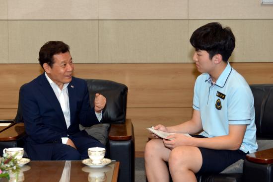 À±ÀåÇö ½ÃÀåÀº 19ÀÏ ¿ÀÈÄ ½Ãû 3Ãþ Á¢°ß½Ç¿¡¼ ±ÝÈ£°íµîÇб³ 2Çг⿡ ÀçÇÐ ÁßÀÎ ±èÇü¹Î(17)±ºÀ» ¸¸³ª ¸àÅ丵(Mentoring) »ó´ãÀ» ÁøÇàÇß´Ù.