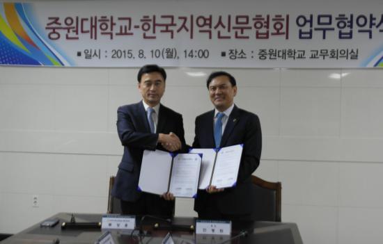 »ç´Ü¹ýÀÎ Çѱ¹Áö¿ª½Å¹®Çùȸ(ȸÀå ·ù»ó¿ë, ÀÌÇÏ ÇÑÁöÇù)°¡ Áö³ 10ÀÏ ÃæºÏ ±«»ê ¼ÒÀç Áß¿ø´ëÇб³(ÃÑÀå ¾Èº´È¯)¿Í ¾÷¹«Çù¾àÀ» ü°áÇß´Ù.