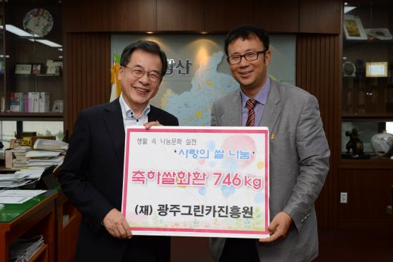 Áö³´Þ 24ÀÏ ±¤»ê±¸ Áø°î»ê´Ü ³» Ŭ¸°µðÁ© ±â¹Ý½Ã¼³¿¡ »õ ÅÍÀüÀ» ¸¶·ÃÇÑ ±¤Áֱ׸°Ä«ÁøÈï¿ø(¿øÀå ¿À¿µ)ÀÌ ÀÌÀü ÃàÇÏ·Î ¹ÞÀº ½Ò Èȯ 769kgÀ» ¾î·Á¿î ÀÌ¿ôµé¿¡°Ô ÀüÇØ´Þ¶ó¸ç Åõ°Ô´õ±¤»ê ³ª´®¹®ÈÀç´Ü¿¡ ±âŹÇß´Ù.