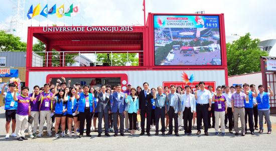 2015±¤ÁÖÀ¯´Ï¹ö½Ã¾Æµå´ëȸ ¼¼°è ´ëÇлý LTE ¹æ¼Û±¹ À¯´Ïºê·Î(ÁÖ°£ Á¤Ã¶)°¡ ±¤ÁÖU´ëȸ ±â°£ Áß Àç¹Ì¿Í °¨µ¿ÀÇ ¼ø°£À» »çÁø°ú ¿µ»óÀ¸·Î ´ãÀ» À̺¥Æ® ¡®U´ëȸ º£½ºÆ®¼¦À» ã¾Æ¶ó¡¯¸¦ ÁøÇàÇÑ´Ù.