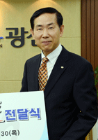 Áö³´Þ 29ÀÏ ÀÌÀºÇà ÇÔÆòÇÑ¿ìÃÌ Ã·´ÜÁ¡ ´ëÇ¥(Çѱ¹À½½Ä¾÷Áß¾Óȸ ±¤»ê±¸ÁöºÎÀå)°¡ ±¤»ê±¸Ã»À» ã¾Æ Åõ°Ô´õ±¤»ê ³ª´®¹®ÈÀç´Ü ¼³¸³ ±â±ÝÀ¸·Î 3¹é¸¸ ¿øÀ» Àü´ÞÇß´Ù.