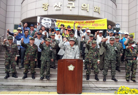 Àü¾çº¹ ±¤»ê±¸ÀÇȸÀÇ¿øÀº 3ÀÏ ±¤»ê±¸ ÀÇȸ ¾Õ¿¡¼ ±¤ÁÖ¡¤Àü³²Áö¿ª ¿ù³²Àü ÂüÀü Àü¿ìȸ ¹× °í¿±Á¦ Àü¿ìȸ 30¿©¸í°ú ÇÔ²² ÇϽøðÅä(ÀϺ» ¿À»çÄ«½ÃÀå) À§¾ÈºÎ ¸Á¾ð¿¡ ´ëÇÑ ±Ôź ¼º¸í¼¸¦ ¹ßÇ¥ Çß´Ù.