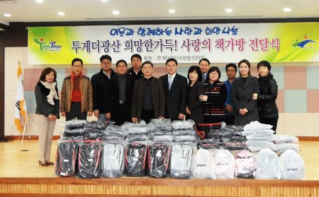 Åõ°Ô´õ±¤»ê ¼ö¿Ïµ¿À§¿øÈ¸(À§¿øÀå ±è´ö¿ø)°¡ ¡®Èñ¸Á´ãÀº Ã¥°¡¹æ ³ª´©±â Çà»ç¡¯¸¦ ¿°í Áö¿ª Çлýµé¿¡°Ô Ã¥°¡¹æÀ» Àü´ÞÇß´Ù
