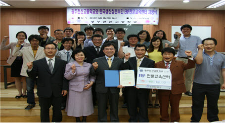 ±¤ÁÖÀü»ê°íµîÇб³(±³Àå ÀÌ¿µÁÖ)°¡ Çѱ¹»ý»ê¼º º»ºÎ(º»ºÎÀå ±èõ¼ö)¿Í ERP¸¦ ÅëÇÑ ÇлýÀÇ »ó¾÷°è °í±Þ½Ç¹«´É·Â °æÀï·Â °È¸¦ À§ÇÑ ±³À° ÈÆ·Ã, ÄÁ¼³ÆÃ ¹× °¢Á¾ Áö¿ø »ç¾÷À» »óÈ£ ¼öÇàÇϱâ À§ÇÑ ERPÀü¹®±³À°¼¾ÅÍ ÁöÁ¤ Çà»ç¸¦ °¡Á³´Ù.