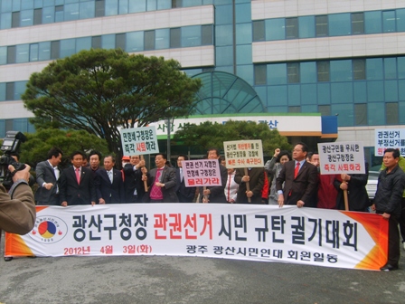 4.11 ÃѼ± ¹ÎÁÖÅëÇÕ´ç °æ¼±À» ¾ÕµÎ°í ºÒ¹ýÀ¸·Î °ø¹«¿øÀ» µ¿¿ø, °ü±Ç¼±°Å¸¦ ÀÚÇàÇÑ ¹ÎÇü¹è ±¤»ê±¸Ã»ÀåÀÇ ÅðÁøÀ» ¿ä±¸ÇÏ´Â ±Ôź´ëȸ¿Í °ËÂûÀÇ ½Å¼ÓÇÑ ¼ö»ç¸¦ Ã˱¸ÇÏ´Â ±âÀÚȸ°ßÀÌ ¿·È´Ù.