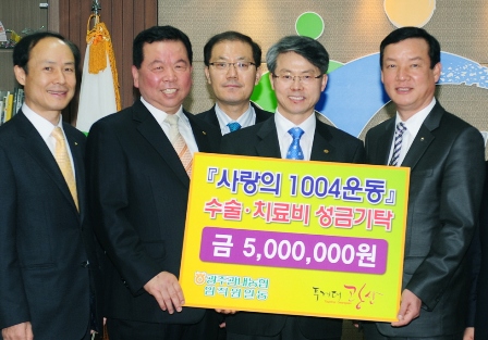 ³óÇù ±¤ÁÖÁö¿ªº»ºÎ´Â ³óÇù»ç¶ûÀÇ Ãµ»ç(1004)¿îµ¿ ¿î¿µÀ§¿øÈ¸¿Í ÇÔ²² ÀÓÁ÷¿øÀÌ ÀÚ¹ßÀûÀ¸·Î ¸ð±ÝÇÑ ¼º±Ý 500¸¸¿øÀ» ±¤»ê±¸¿¡ ±âŹÇß´Ù.