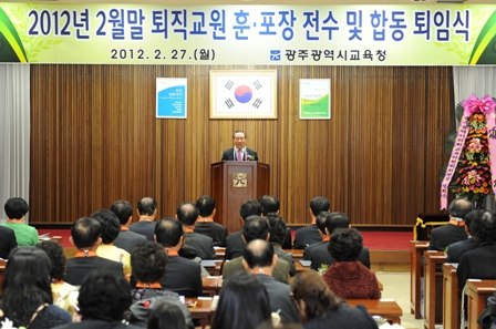 ÀåÈÖ±¹ ±¤ÁÖ±¤¿ª½Ã±³À°°¨Àº Áö³ ´Þ 27ÀÏ ¿ÀÀü ½Ã±³À°Ã» ´ëȸÀǽǿ¡¼ ¿¸° 2012³â 2¿ù ¸» ÅðÁ÷±³¿ø ÈÆ¤ýÆ÷Àå Àü¼ö ¹× ÇÕµ¿ ÅðÀӽĿ¡ Âü¼®ÇØ È²Á¶±ÙÁ¤ÈÆÀå ¼ö»óÀÚÀÎ µ¿ºÎ±³À°Áö¿øÃ»(±³À°Àå À̱â¿ì) µî 116¸í¿¡°Ô ÈÆ¤ýÆ÷ÀåÀ» Àü¼öÇϰí, ±×¡¦ |