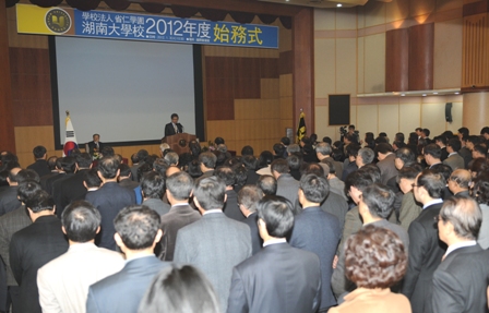 Çб³¹ýÀÎ ¼ºÀÎÇпø È£³²´ëÇб³(ÀÌ»çÀå ¹Ú±âÀÎ)´Â 3ÀÏ ¿ÀÀü 10½Ã30ºÐ ±¤»êÄ·ÆÛ½º ±¹Á¦È¸Àǽǿ¡¼ ¹Ú±âÀÎ ÀÌ»çÀå°ú ¼°¼® ÃÑÀåÀ» ºñ·Ô, 500¿©¸íÀÇ ±³Á÷¿øÀÌ Âü¼®ÇÑ °¡¿îµ¥ 2012³âµµ ½Ã¹«½ÄÀ» °¡Á³´Ù.