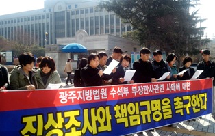 ±¤ÁÖÁö¹æ¹ý¿ø °íÀ§ ¹ý°üÀÇ ºÎÀûÀýÇÑ Ã³½Å¿¡ ´ëÇÑ »çȸÀû ÆÄÀåÀÌ ¹ýÁ¶°è¿¡ À̾î Á¤Ä¡±Ç°ú ½Ã¹Î»çȸ´Üü·Î±îÁö È®´ëµÇ°í ÀÖ´Ù.