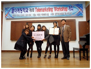 ±¤ÁÖ¿©ÀÚ´ëÇб³(ÃÑÀå ¿ÀÀå¿ø) Äݸ¶ÄÉÆÃÇаú´Â Áö³ 10ÀÏ [Á¦6ȸ Telemarketing Workshop]À» °³ÃÖÇϰí ÀçÇлýÀÌ Âü¿©ÇÑ ÃÑ 7°³ ÆÀÀÌ ÆÀº° ¿¬±¸Á¶»ç°á°ú¸¦ ¹ßÇ¥Çß´Ù.