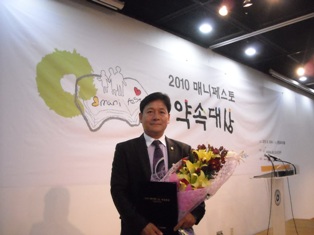 ÀÌÁØ¿ ±¤»ê±¸ÀÇȸ ÀÇÀåÀÌ Çѱ¹¸Å´ÏÆä½ºÅä½Çõº»ºÎ(»óÀÓ´ëÇ¥ °Áö¿ø)°¡ ÁÖ°üÇÏ´Â 2010 ¸Å´ÏÆä½ºÅä(Áö¹æ¼±°ÅºÎºÐ) ¾à¼Ó´ë»ó Æò°¡¿¡¼ ¿µ¿¹ÀÇ ´ë»ó ¼ö»óÇß´Ù.