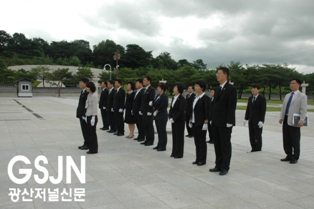 Á¦6´ë ±¤»ê±¸ÀÇȸ°¡ Áö³ 7ÀÏ °³¿ø½Ä¿¡ ÀÌ¾î º»°ÝÀûÀÎ ÀÇÁ¤È°µ¿¿¡ µé¾î°£ °¡¿îµ¥ ÀÌÁØ¿ ±¤»ê±¸ÀÇÀåÀ» ºñ·ÔÇÑ ÀÇ¿ø 11¸íÀÌ ±¹¸³5.18¹ÎÁÖ¹¦Áö¸¦ Âü¹èÇß´Ù.