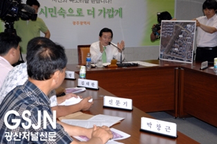 ¹ÎÇü¹è ±¤»ê±¸Ã»ÀåÀº Áö³ 8ÀÏ ¡°4´ë° »ç¾÷ÀÏȯÀ¸·Î ÃßÁøÇϰí ÀÖ´Â ¿µ»ê° ½ÂÃ̺¸ÀÇ ³ôÀ̸¦ 7.5m¿¡¼ 5m ³·Ãç¾ß ÇÑ´Ù¡±°í ÁÖÀåÇϰí 4°³Ç×À» °ÇÀÇÇÏ´Â µî Áö¿ªÇö¾È ÇØ°á¿¡ ³ª¼°í ÀÖ´Ù.