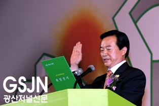 ¹ÎÇü¹è ¹Î¼±5±â ±¤»ê±¸Ã»ÀåÀº Áö³ 1ÀÏ ±¤»ê¿¹¼ú¹®Èȸ°ü¿¡¼ ÃëÀÓ½ÄÀ» °®°í ¡®»ç¶÷ »ç´Â ¼¼»ó ´õ ÁÁÀº ±¤»ê¡¯ °Ç¼³À» À§ÇÑ Ã¹ °ÉÀ½À» ³»µó¾ú´Ù.