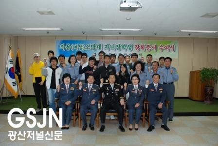 ±¤»ê¼Ò¹æ¼°¡ Áö³´Þ 30ÀÏ ±¤»êÀÇ¿ë¼Ò¹æ´ë¿ø ÀÚ³à 14¸í¿¡ ÀåÇбÝÀ» Àü´ÞÇß´Ù.