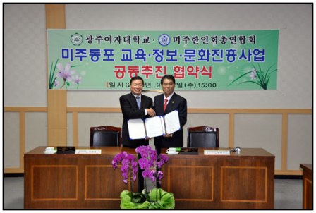 ±¤ÁÖ¿©ÀÚ´ëÇб³(ÃÑÀå ¿ÀÀå¿ø)¿Í ¹ÌÁÖÇÑÀÎȸÃÑ¿¬ÇÕȸ °â ¼¼°èÇÑÀÎȸÀå(ȸÀå ³²¹®±â)Àº Áö³ 2ÀÏ ±³³» ¹«µî°ü ´ëȸÀǽǿ¡¼ »óÈ£±³·ùÇù·Â Çù¾à½ÄÀ» °®°í ¾ç ±â°üÀÇ »óÈ£¹ßÀü¿¡ Çù·ÂÇϱâ·Î ÇÕÀÇÇß´Ù.