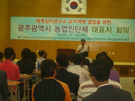 ±¤ÁÖÁö¿ª ³ó¾÷ÀÎ ´ÜüµéÀÌ ´ëÇ¥ÀÚ È¸ÀǸ¦ ¿°í ¼¼°è±èÄ¡¿¬±¸¼Ò ±¤ÁÖÀ¯Ä¡¸¦ À§ÇÑ °ÇÀǼ¸¦ äÅÃÇϰí À̸¦ ³ó¸²¼ö»ê½ÄǰºÎ¿¡ Àü´ÞÇϱâ·Î Çß´Ù.